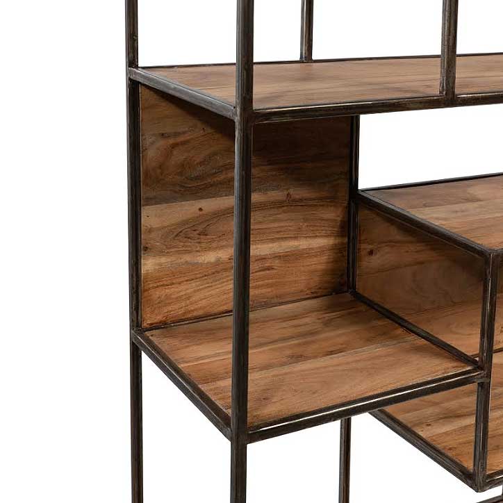 Scaffale industrial - libreria quadrata legno e ferro ...